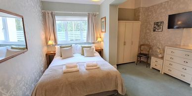 Totland has a superking bed which can be made into twin beds. Separate ensuite shower room, with basin and wc. It overlooks the woodland at the rear of the guesthouse and benefits from the morning sun.